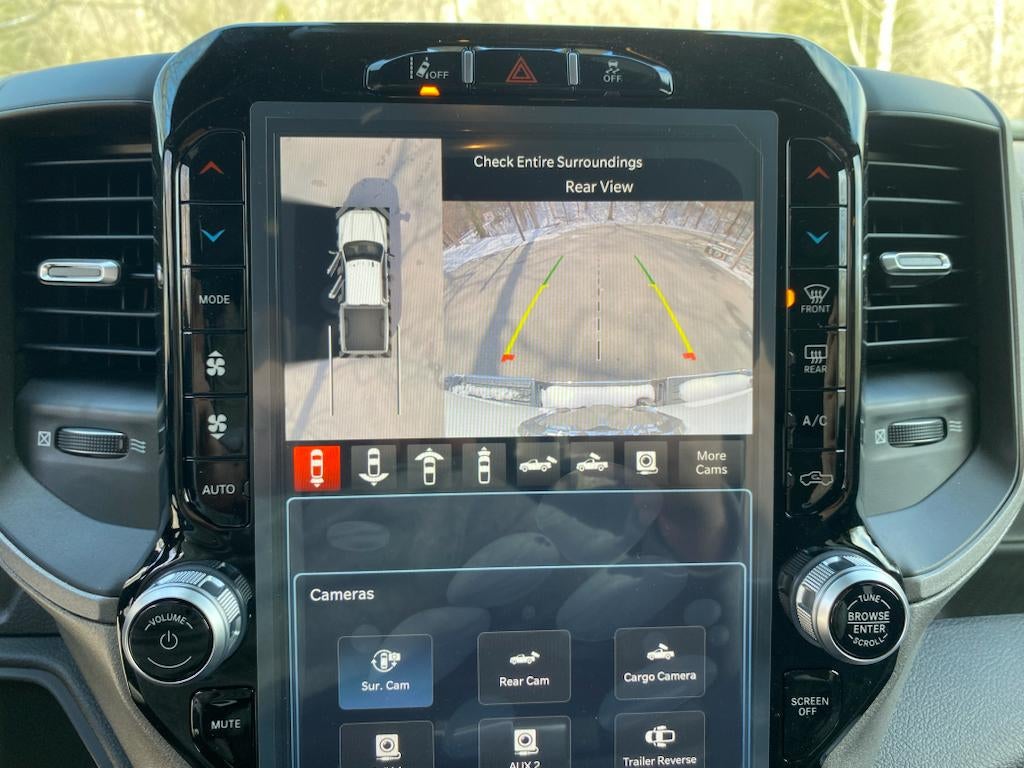 Chrome Appearance Group: Bright Rear Bumper; Chrome Grille Surround; Matte Black Mesh Grille with Chrome; Center Hub; Chrome Headlamp Bezels; 18" Steel Spare Wheel; 18" X 8.0" Steel Chrome Clad Wheels; LT275/70R18E BSW AS Tires; Bright Front Bumper. Convenience Group: Rear View Auto Dim Mirror; Air Conditioning ATC with Dual Zone Control; Tinted Acoustic Windshield Glass. Safety Group: Auto High Beam Headlamp Control; Cluster 7.0" TFT Color Display; Rain Sensitive Windshield Wipers; Leather Wrapped Steering Wheel; Adaptive Cruise Control with Stop; Steering Wheel Mounted Audio Controls; Adaptive Steering System; Full Speed Forward Collision Warning Plus; Lane Keep Assist. Quick Order Package 2HA Tradesman. Tradesman Level 2 Equipment Group: SiriusXM Radio Service; Rear Window Defroster; For More Info. Call 800-643-2112; 40/20/40 Split Bench Seat; Rear Power Sliding Window; Manual Folding Exterior Mirrors; Rear Folding Seat; 4 Way Front Headrests; Front Armrest with Cupholders; Exterior Mirrors with Heating Element; Remote USB Port - Charge Only; Manual Adjust 4-Way Front Passenger Seat; Mirror Running Lights; Black Exterior Mirrors; 2 Way Rear Headrest Seat; Carpet Floor Covering; Power Adjustable Convex Aux Mirrors; Cloth 40/20/40 Bench Seat; Power Heated Folding Telescope Mirrors; Exterior Mirrors with Supplemental Signals; Exterior Mirrors Courtesy Lamps; Manual Adjust 4-Way Driver Seat; Manuarl Telescoping Mirrors; Power Adjust Mirrors. Towing Technology Group: Center Stop Lamp with Cargo View Camera; Surround View Camera System; Blind Spot and Cross Path Detection; Power Heated Fold Telescope Mirrors; Trailer Reverse Guidance; Chrome Nostrils/mic Black Grille. Bed Utility Group: MOPAR Spray in Bedliner; MOPAR Deployable Bed Step; LED Bed Lighting. Uconnect 5 Navigation with 12.0" Display Radio. Blind Spot and Cross Path Detection. MOPAR Spray in Bedliner. 5th Wheel/gooseneck Towing Prep Group. Cloth 40/20/40 Bench Seat. Trailer Brake Control. Center Stop Lamp with Cargo View Camera. ParkSense Rear Park Assist System. Power Heated Fold Telescope Mirrors. Rear Window Defroster. Carpet Floor Covering. Tow Hooks. **Equipment listed is based on original vehicle build and subject to change. Please confirm the accuracy of the included equipment by calling the dealer prior to purchase.**