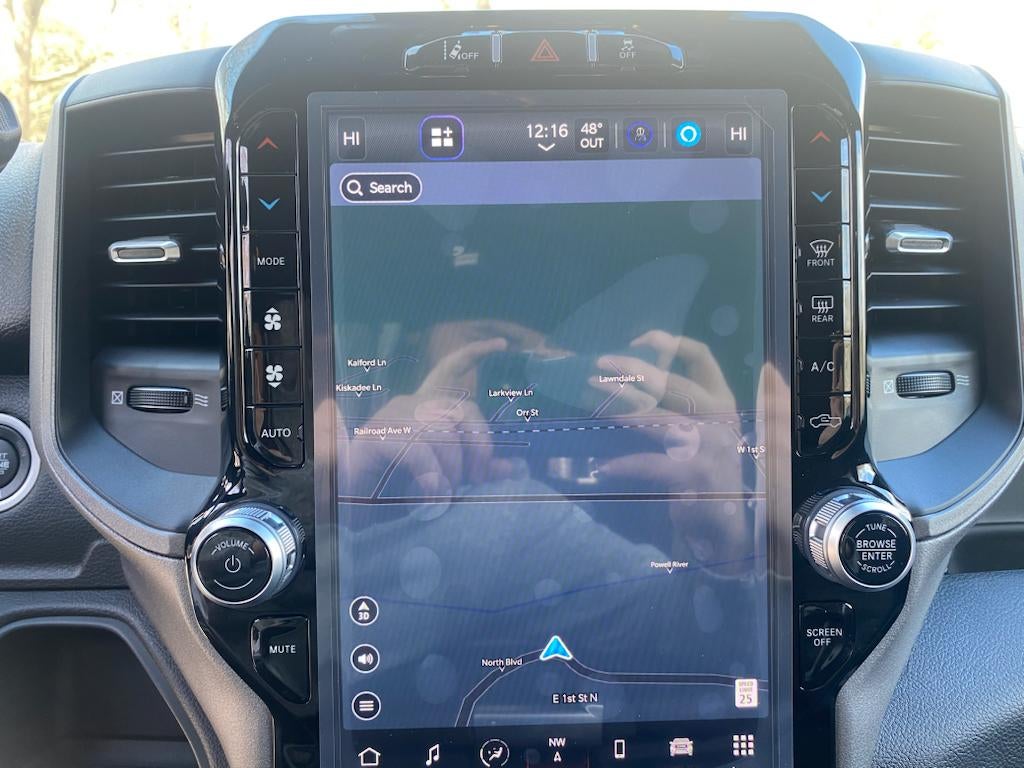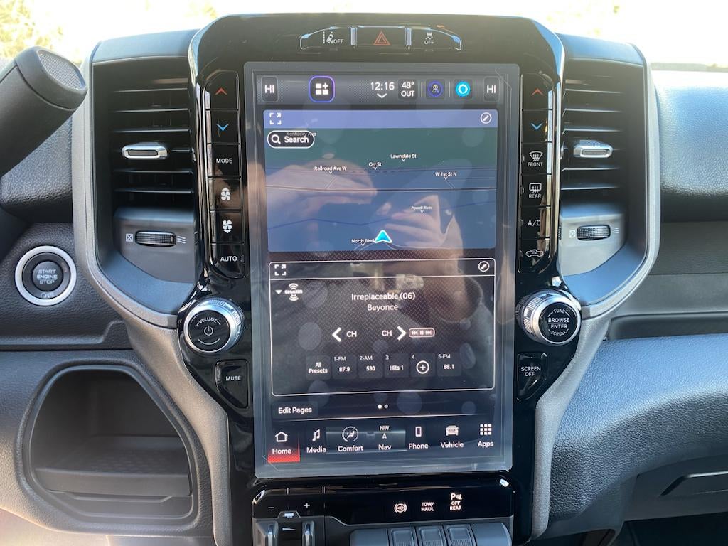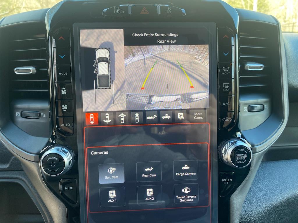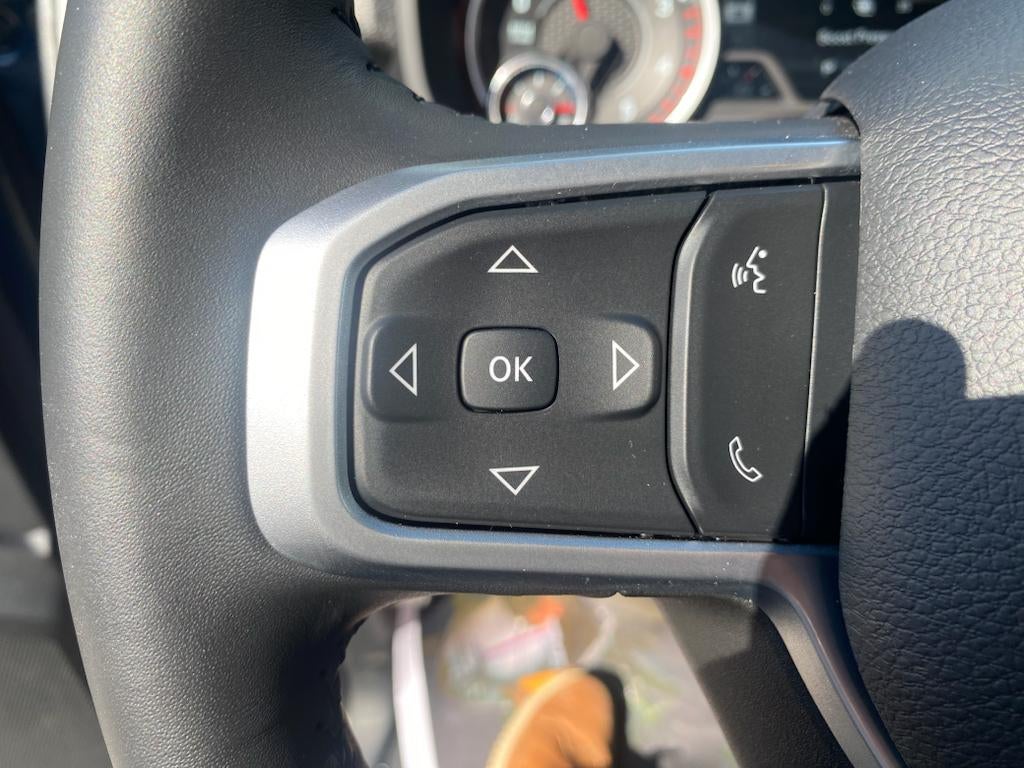 Chrome Appearance Group: Bright Rear Bumper; Chrome Grille Surround; Matte Black Mesh Grille with Chrome; Center Hub; Chrome Headlamp Bezels; 18" Steel Spare Wheel; 18" X 8.0" Steel Chrome Clad Wheels; LT275/70R18E BSW AS Tires; Bright Front Bumper. Convenience Group: Rear View Auto Dim Mirror; Air Conditioning ATC with Dual Zone Control; Tinted Acoustic Windshield Glass. Safety Group: Auto High Beam Headlamp Control; Cluster 7.0" TFT Color Display; Rain Sensitive Windshield Wipers; Leather Wrapped Steering Wheel; Adaptive Cruise Control with Stop; Steering Wheel Mounted Audio Controls; Adaptive Steering System; Full Speed Forward Collision Warning Plus; Lane Keep Assist. Quick Order Package 2HA Tradesman. Tradesman Level 2 Equipment Group: SiriusXM Radio Service; Rear Window Defroster; For More Info. Call 800-643-2112; 40/20/40 Split Bench Seat; Rear Power Sliding Window; Manual Folding Exterior Mirrors; Rear Folding Seat; 4 Way Front Headrests; Front Armrest with Cupholders; Exterior Mirrors with Heating Element; Remote USB Port - Charge Only; Manual Adjust 4-Way Front Passenger Seat; Mirror Running Lights; Black Exterior Mirrors; 2 Way Rear Headrest Seat; Carpet Floor Covering; Power Adjustable Convex Aux Mirrors; Cloth 40/20/40 Bench Seat; Power Heated Folding Telescope Mirrors; Exterior Mirrors with Supplemental Signals; Exterior Mirrors Courtesy Lamps; Manual Adjust 4-Way Driver Seat; Manuarl Telescoping Mirrors; Power Adjust Mirrors. Towing Technology Group: Center Stop Lamp with Cargo View Camera; Surround View Camera System; Blind Spot and Cross Path Detection; Power Heated Fold Telescope Mirrors; Trailer Reverse Guidance; Chrome Nostrils/mic Black Grille. Bed Utility Group: MOPAR Spray in Bedliner; MOPAR Deployable Bed Step; LED Bed Lighting. Uconnect 5 Navigation with 12.0" Display Radio. Blind Spot and Cross Path Detection. MOPAR Spray in Bedliner. 5th Wheel/gooseneck Towing Prep Group. Cloth 40/20/40 Bench Seat. Trailer Brake Control. Center Stop Lamp with Cargo View Camera. ParkSense Rear Park Assist System. Power Heated Fold Telescope Mirrors. Patriot Blue Pearlcoat. Rear Window Defroster. Carpet Floor Covering. Tow Hooks. **Equipment listed is based on original vehicle build and subject to change. Please confirm the accuracy of the included equipment by calling the dealer prior to purchase.**