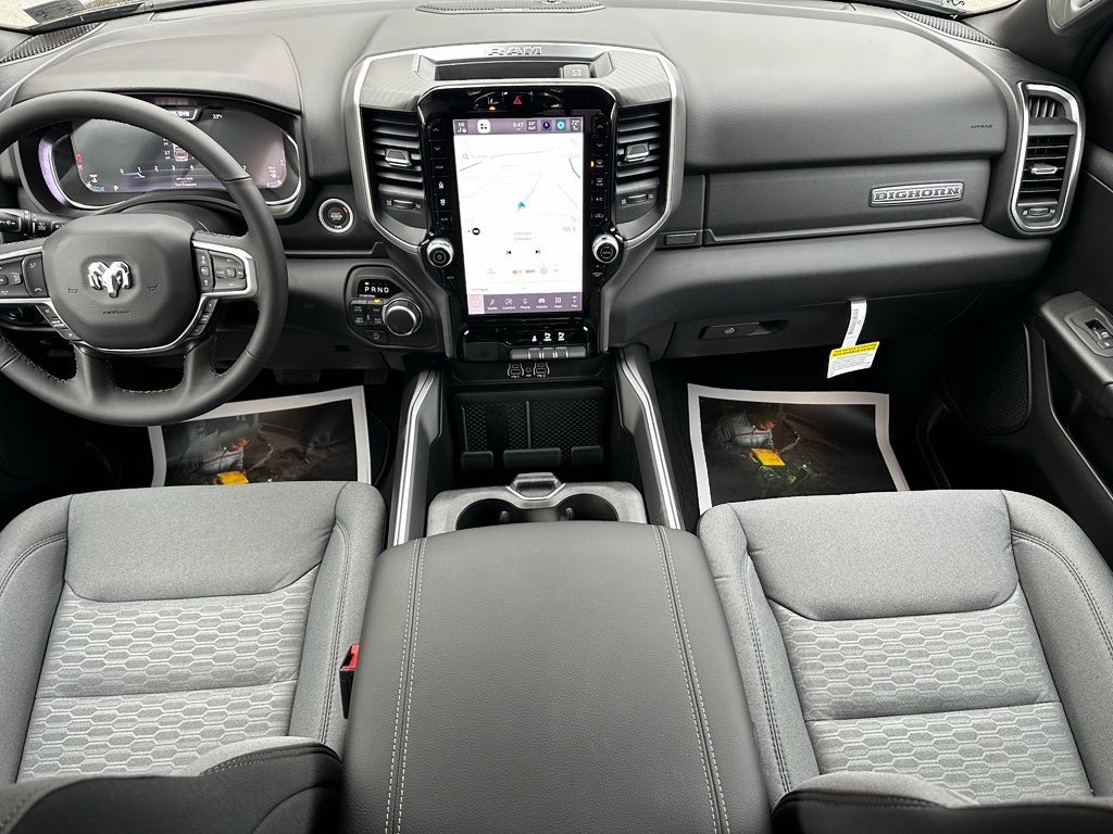 Quick Order Package 27Z Big Horn. Big Horn Level 2 Equipment Group: Google Android Auto; SiriusXM Radio Service; USB Host Flip; Power Adjustable Pedals; Leather Wrapped Steering Wheel; Integrated Voice Command with Bluetooth®; 12" Touchscreen Display; Glove Box Lamp; Auto Power-Folding Mirrors; 115V Auxiliary Rear Power Outlet; Media Hub with 2 Charge Only USBs; Heated Front Seats; Security Alarm; Black Premium Power Mirrors; Apple CarPlay; Premium Overhead Console; 9 Amplified Speakers with Subwoofer; Disassociated Touchscreen Display; Body Color Fender Flares; Remote Tailgate Release; 115V Auxiliary Power Outlet; LED Dome Lamp with On/off Switch; Universal Garage Door Opener; 2nd Row in Floor Storage Bins; Sun Visors with Illuminated Vanity Mirrors; LED Footwell Lighting; Rear Window Defroster; Integrated Center Stack Radio; Rear View Auto Dim Mirror; Rear Power Sliding Window; Connectivity - US/Canada; GPS Navigation; 4G LTE Wi-Fi Hot Spot; GPS Antenna Input; Overhead LED Lamps; 20" X 9" Aluminum Chrome Clad Wheels; Exterior Mirrors with Heating Element; Auto Dim Exterior Driver Mirror; SiriusXM with 360L; Global Telematics Box Module; Connected Travel and Traffic Services; Heated Steering Wheel; Black Exterior Mirrors; Configurable Drive Mode; 400W Inverter; HD Radio; Deluxe Cloth Bucket Seats; Uconnect 5 Navigation with 12.0" Display Radio; Exterior Mirrors with Supplemental Signals; Steering Wheel Mounted Audio Controls; Exterior Mirrors Courtesy Lamps; Air Conditioning ATC with Dual Zone Control; Cluster 7.0" TFT Color Display; Convex Wide-Angle Exterior Mirror Insert. Bed Utility Group: MOPAR Spray in Bedliner; MOPAR Deployable Bed Step; MOPAR 4 Adjustable Cargo Tie-Down Hooks; Pick-Up Box Lighting; Exterior 115V AC Outlet. Quick Order Package 23Z Big Horn. 20" X 9" Aluminum Chrome Clad Wheels. 9 Amplified Speakers with Subwoofer. Diamond Black Crystal PC. Cluster 12" TFT Color Display. MyFlexCare Service Plan. 3.92 Rear Axle Ratio. Rear Wheelhouse Liners. **Equipment listed is based on original vehicle build and subject to change. Please confirm the accuracy of the included equipment by calling the dealer prior to purchase.**